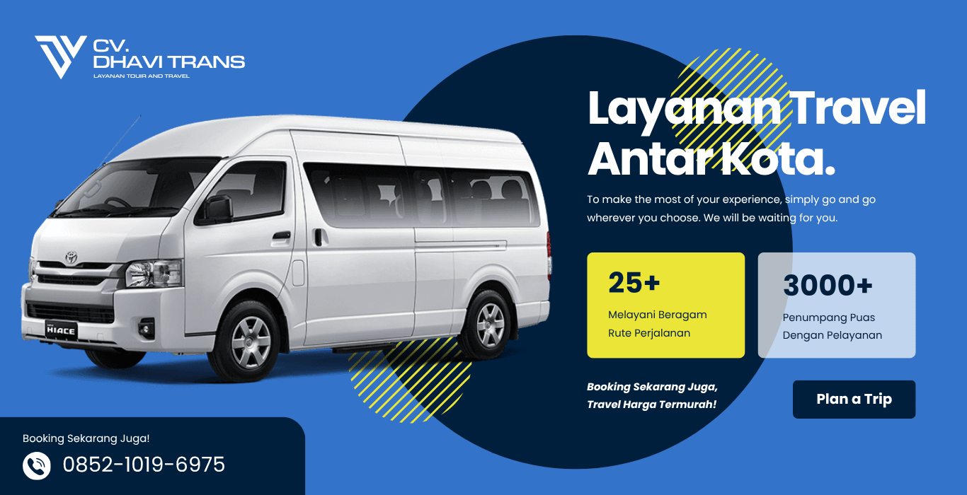 Dhavi Trans adalah jasa travel and tour terpercaya yang mampu memberikan jaminan keamanan dan kenyamanan kepada semua penumpang selama perjalanan hingga sampai tujuan. Untuk menjaga performa kendaraan, kami rutin melakukan servis semua jenis armada secara berkala. Anda bisa langsung melakukan pemesanan layanan melalui chat WhatsApp admin, jadi tidak perlu repot datang langsung ke kantor.